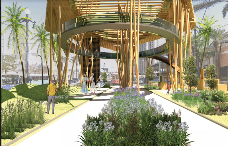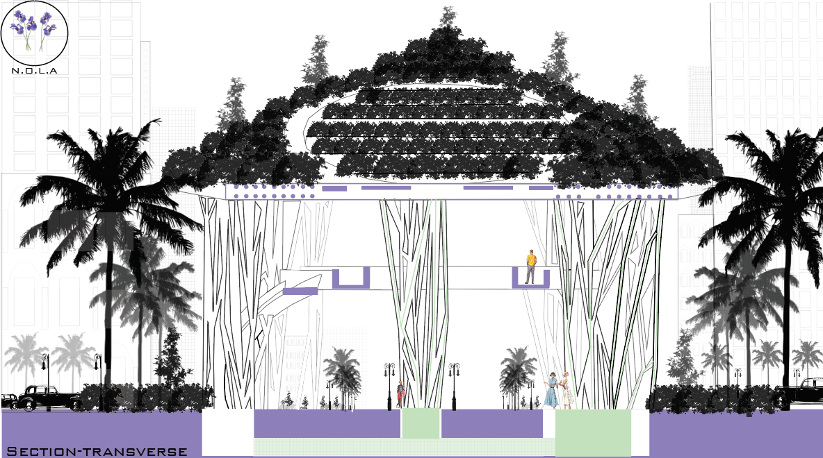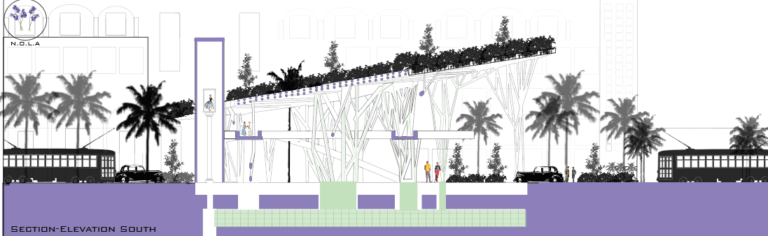 Taking inspiration from a tree, its branches, and canopy while still acting as a vital streetcar station and viewing instrument for Mardi Gras Celebrations, The notion of finding a balance between utility and beauty was kept in mind.