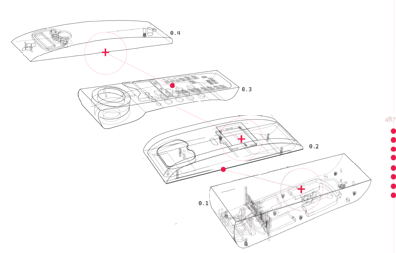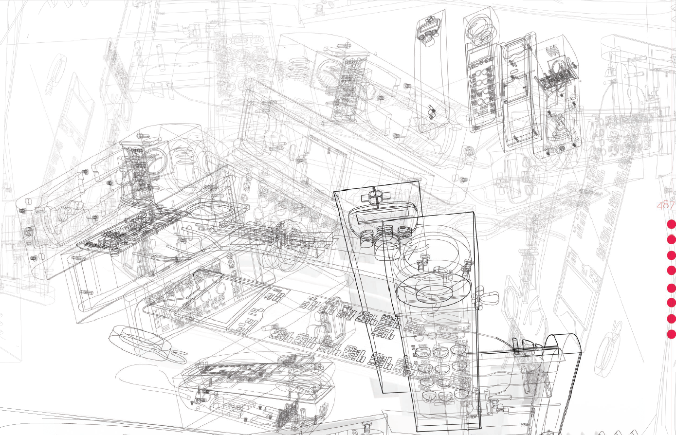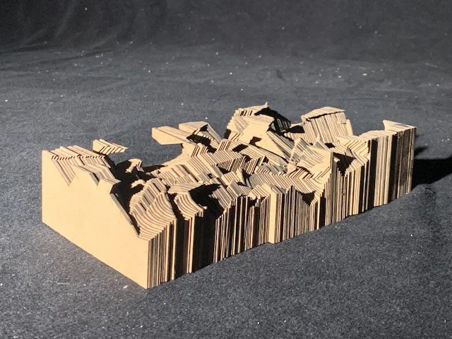 The process began with the selection and dismantling of a manufactured object. The goal was to dissect, abstract, and impose these abstractions on created landscapes. The object I selected was an older model home phone, which was then used as elements to create a layered landscape