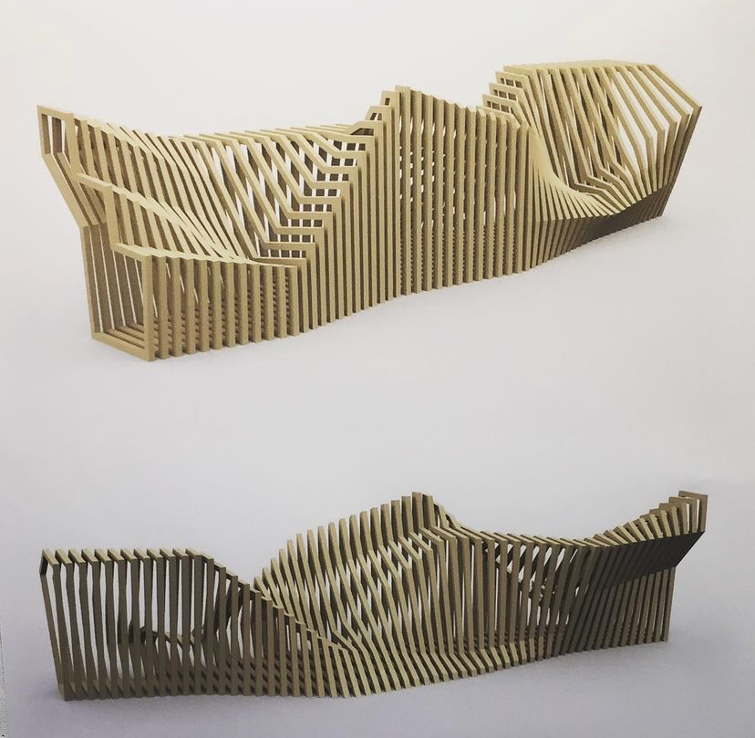 The Morphic Chair, was a semester long design build project where teams of three students would design a section of the bench. Through collaboration reach section had to connect in both design and physicality, each section had to support the weight of multiple people, and required only the use of interlocking units designed with no screws or nails.